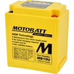 The Motobatt QuadFlex AGM motorcycle battery uses Absorbent Glass Mat (AGM) technology, offering superior cold cranking amps (CCA), a longer service life, and a maintenance-free design. It is considered one of the best motorcycle batteries for performance, reliability, and durability, especially for motorcycles, ATVs, UTVs, and other powersports vehicles.