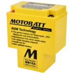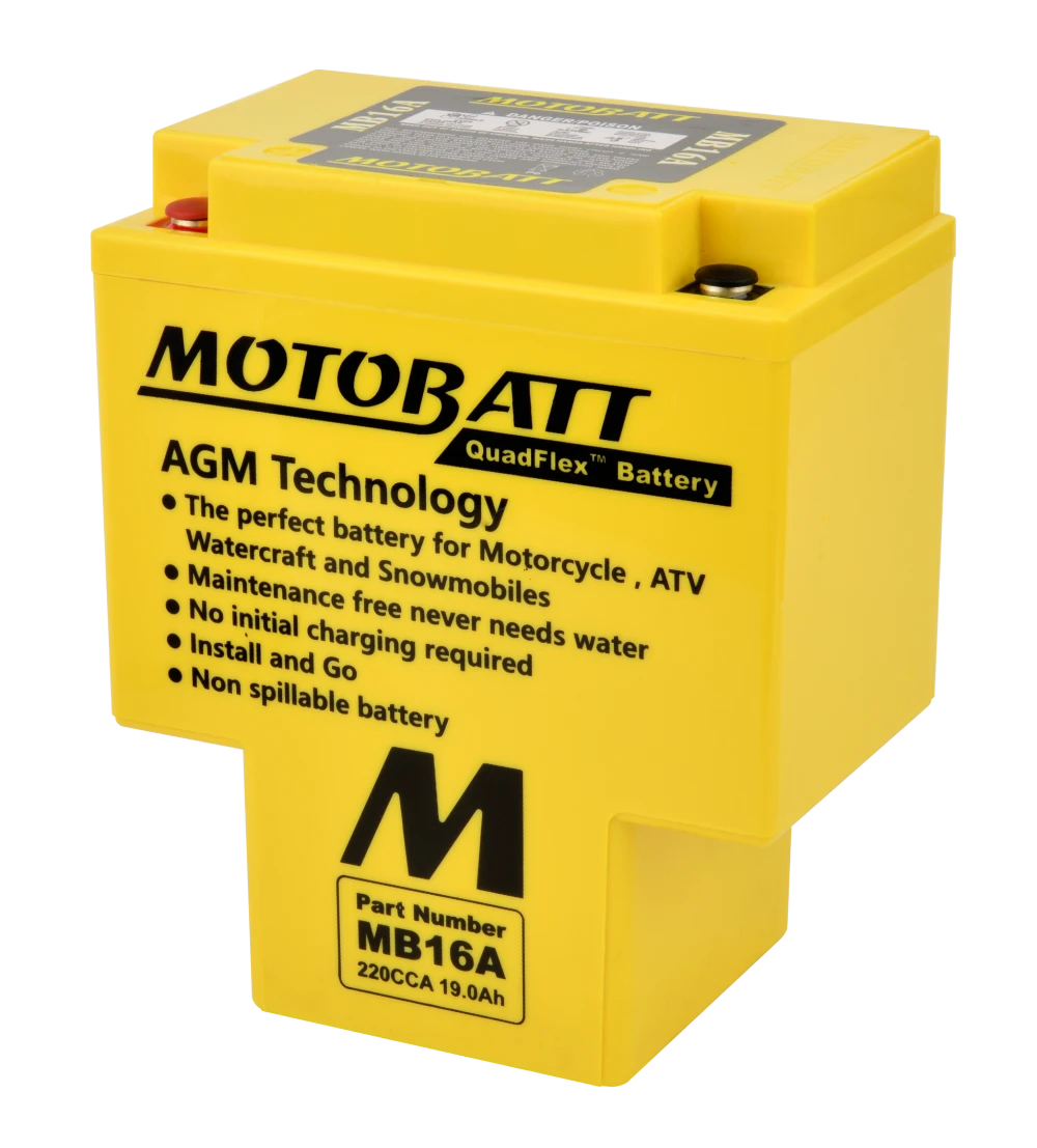 The Motobatt QuadFlex AGM motorcycle battery uses Absorbent Glass Mat (AGM) technology, offering superior cold cranking amps (CCA), a longer service life, and a maintenance-free design. It is considered one of the best motorcycle batteries for performance, reliability, and durability, especially for motorcycles, ATVs, UTVs, and other powersports vehicles.