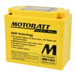 The Motobatt QuadFlex AGM motorcycle battery uses Absorbent Glass Mat (AGM) technology, offering superior cold cranking amps (CCA), a longer service life, and a maintenance-free design. It is considered one of the best motorcycle batteries for performance, reliability, and durability, especially for motorcycles, ATVs, UTVs, and other powersports vehicles.