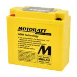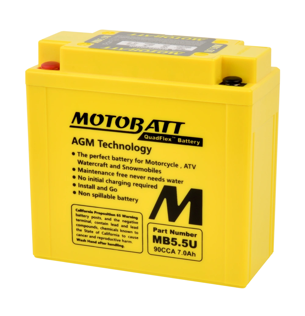 The Motobatt QuadFlex AGM motorcycle battery uses Absorbent Glass Mat (AGM) technology, offering superior cold cranking amps (CCA), a longer service life, and a maintenance-free design. It is considered one of the best motorcycle batteries for performance, reliability, and durability, especially for motorcycles, ATVs, UTVs, and other powersports vehicles.