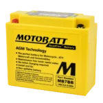 The Motobatt QuadFlex AGM motorcycle battery uses Absorbent Glass Mat (AGM) technology, offering superior cold cranking amps (CCA), a longer service life, and a maintenance-free design. It is considered one of the best motorcycle batteries for performance, reliability, and durability, especially for motorcycles, ATVs, UTVs, and other powersports vehicles.