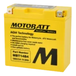 The Motobatt QuadFlex AGM motorcycle battery uses Absorbent Glass Mat (AGM) technology, offering superior cold cranking amps (CCA), a longer service life, and a maintenance-free design. It is considered one of the best motorcycle batteries for performance, reliability, and durability, especially for motorcycles, ATVs, UTVs, and other powersports vehicles.