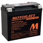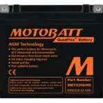 The Motobatt QuadFlex AGM motorcycle battery uses Absorbent Glass Mat (AGM) technology, offering superior cold cranking amps (CCA), a longer service life, and a maintenance-free design. It is considered one of the best motorcycle batteries for performance, reliability, and durability, especially for motorcycles, ATVs, UTVs, and other powersports vehicles.