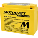 The Motobatt QuadFlex AGM motorcycle battery uses Absorbent Glass Mat (AGM) technology, offering superior cold cranking amps (CCA), a longer service life, and a maintenance-free design. It is considered one of the best motorcycle batteries for performance, reliability, and durability, especially for motorcycles, ATVs, UTVs, and other powersports vehicles.