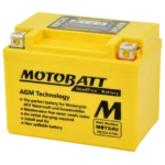 The Motobatt QuadFlex AGM motorcycle battery uses Absorbent Glass Mat (AGM) technology, offering superior cold cranking amps (CCA), a longer service life, and a maintenance-free design. It is considered one of the best motorcycle batteries for performance, reliability, and durability, especially for motorcycles, ATVs, UTVs, and other powersports vehicles.