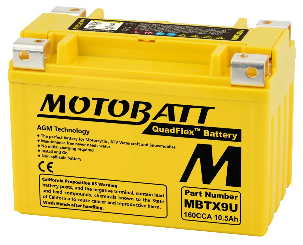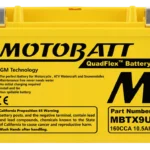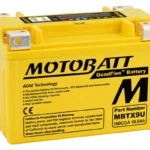 The Motobatt QuadFlex AGM motorcycle battery uses Absorbent Glass Mat (AGM) technology, offering superior cold cranking amps (CCA), a longer service life, and a maintenance-free design. It is considered one of the best motorcycle batteries for performance, reliability, and durability, especially for motorcycles, ATVs, UTVs, and other powersports vehicles.