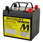 The Motobatt QuadFlex AGM motorcycle battery uses Absorbent Glass Mat (AGM) technology, offering superior cold cranking amps (CCA), a longer service life, and a maintenance-free design. It is considered one of the best motorcycle batteries for performance, reliability, and durability, especially for motorcycles, ATVs, UTVs, and other powersports vehicles.