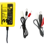 Charger and maintainer of sealed AGM and GEL batteries. This Motobatt charger performs 3 stages of charging algorithm and maintenance. The original box includes a cable with crocodile clips and a cable with rings.