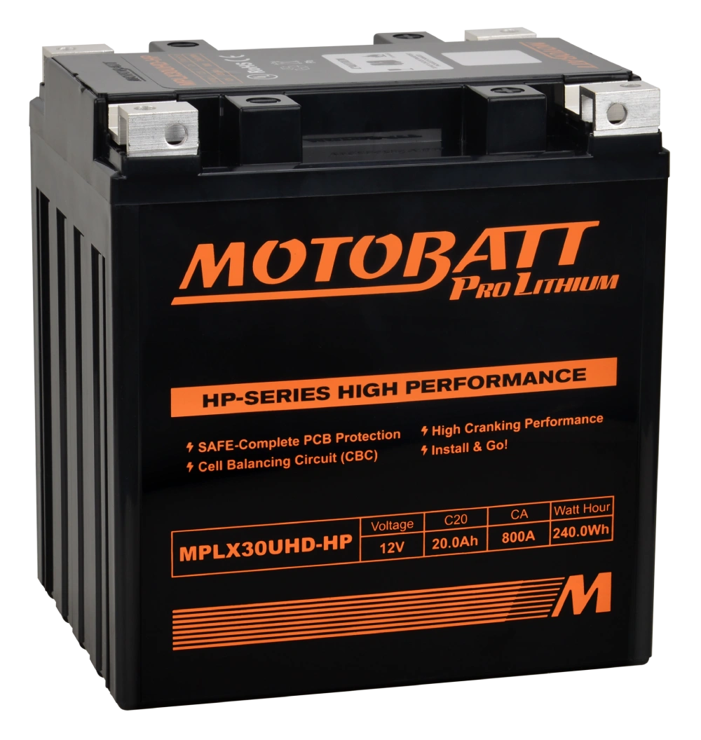 La serie HP ofrece amperios de arranque en frío (CCA) muy altos y cuenta con un sistema de gestión de batería (BMS) de alto rendimiento, lo que las hace perfectas para motocicletas de gran cilindrada, bicicletas de turismo y ATV.