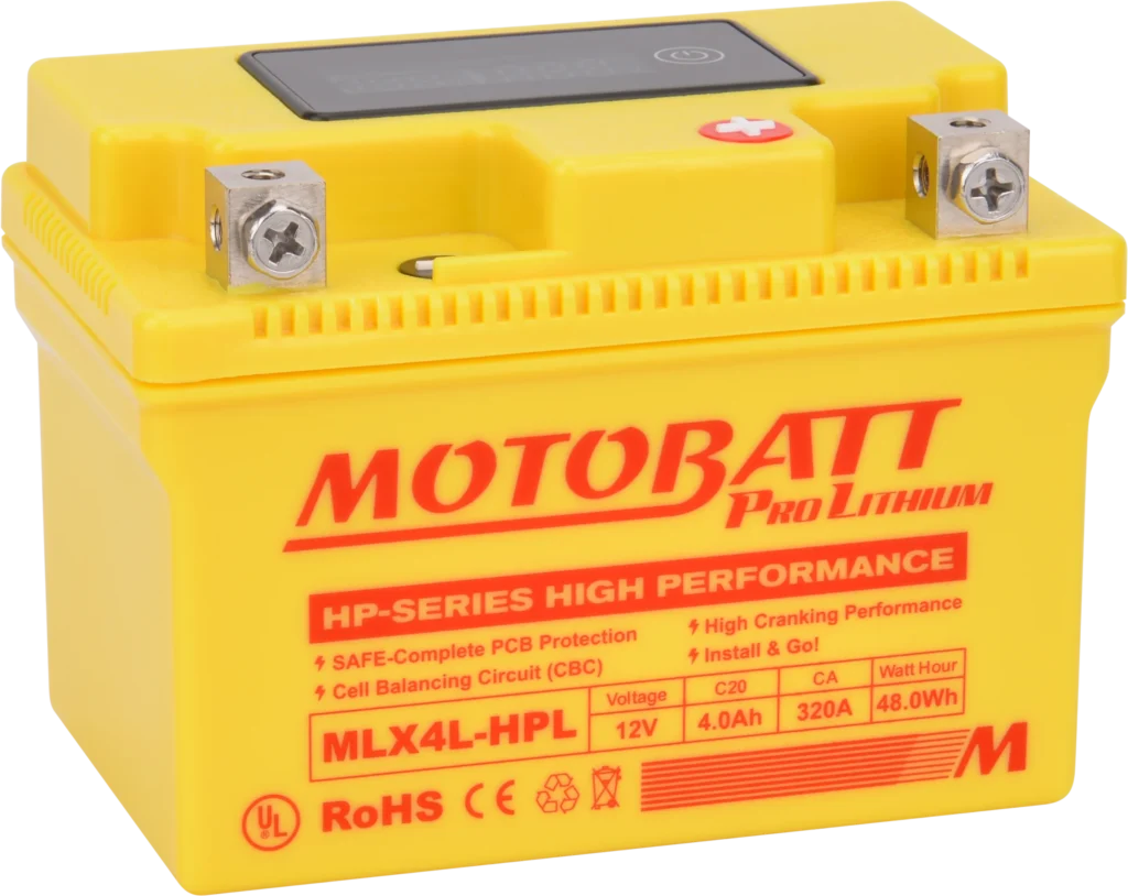 Las baterías Motobatt Pro-Lithium HP-Series incluyen un circuito de balanceo de celdas (CBC) utilizado para optimizar el voltaje de cada celda, proporcionando la máxima potencia de salida. Además, incluye un circuito de protección (PCB) contra sobrecarga, descarga y temperatura.
