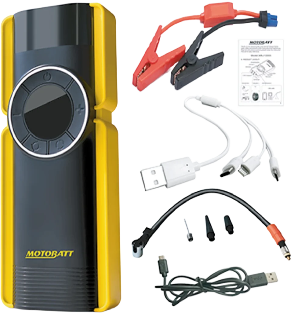 Motobatt Jump Starters are compact, powerful, and easy to use, allowing you to start your vehicle in seconds without external assistance. With smart technology and built-in protection, they ensure safe operation even in extreme conditions. Featuring practical functions such as USB ports, an LED flashlight, and an air compressor, they’re essential for any adventure or workshop. Available in lithium or supercapacitor versions, Motobatt Jump Starters deliver instant power, maximum durability, and professional performance.